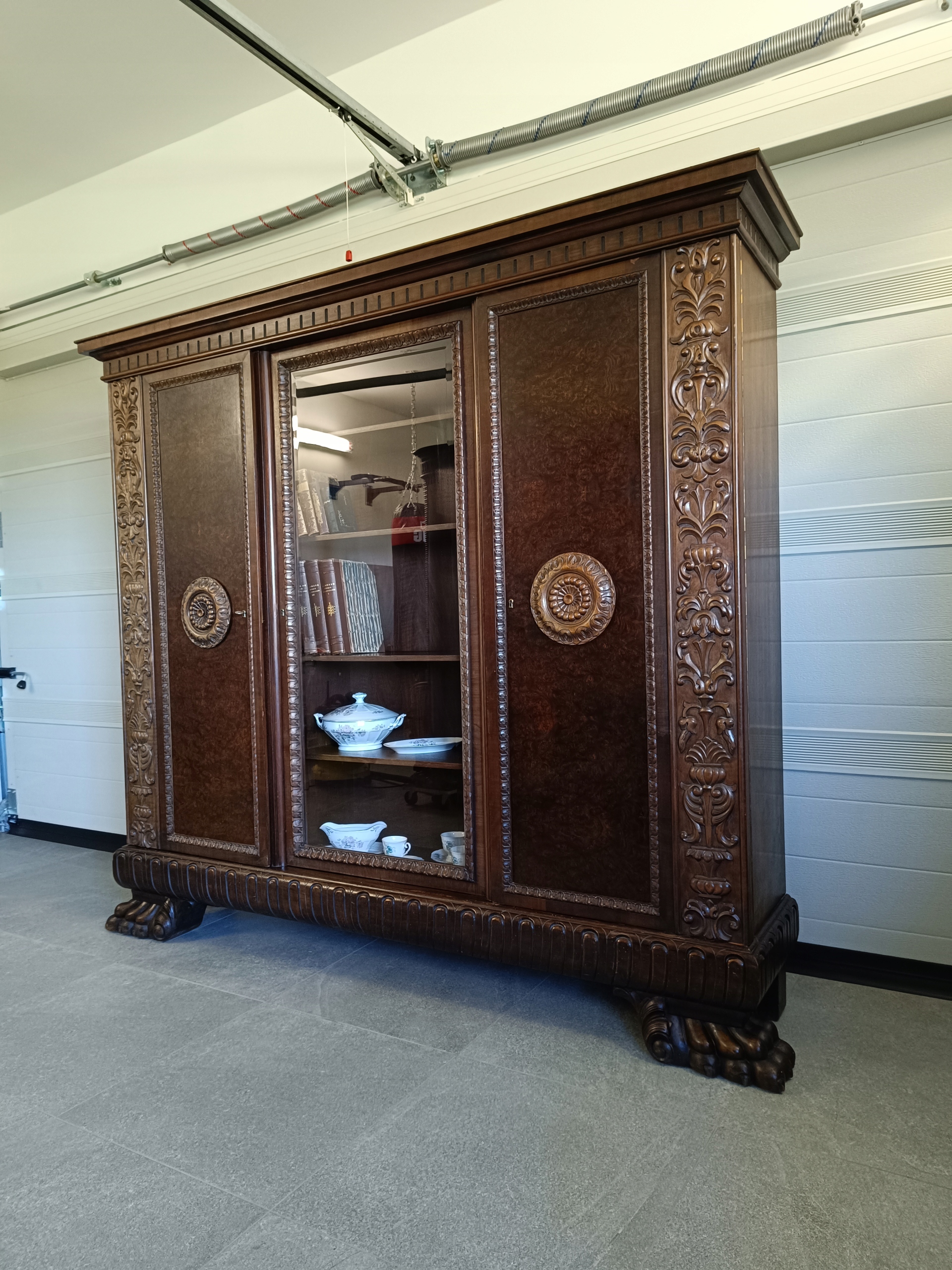 ШАФА ДОВОЄННА БІБЛІОТЕКА РІЗЬБЛЕНА НА ЛЕВОВИХ ЛАПАХ 1916