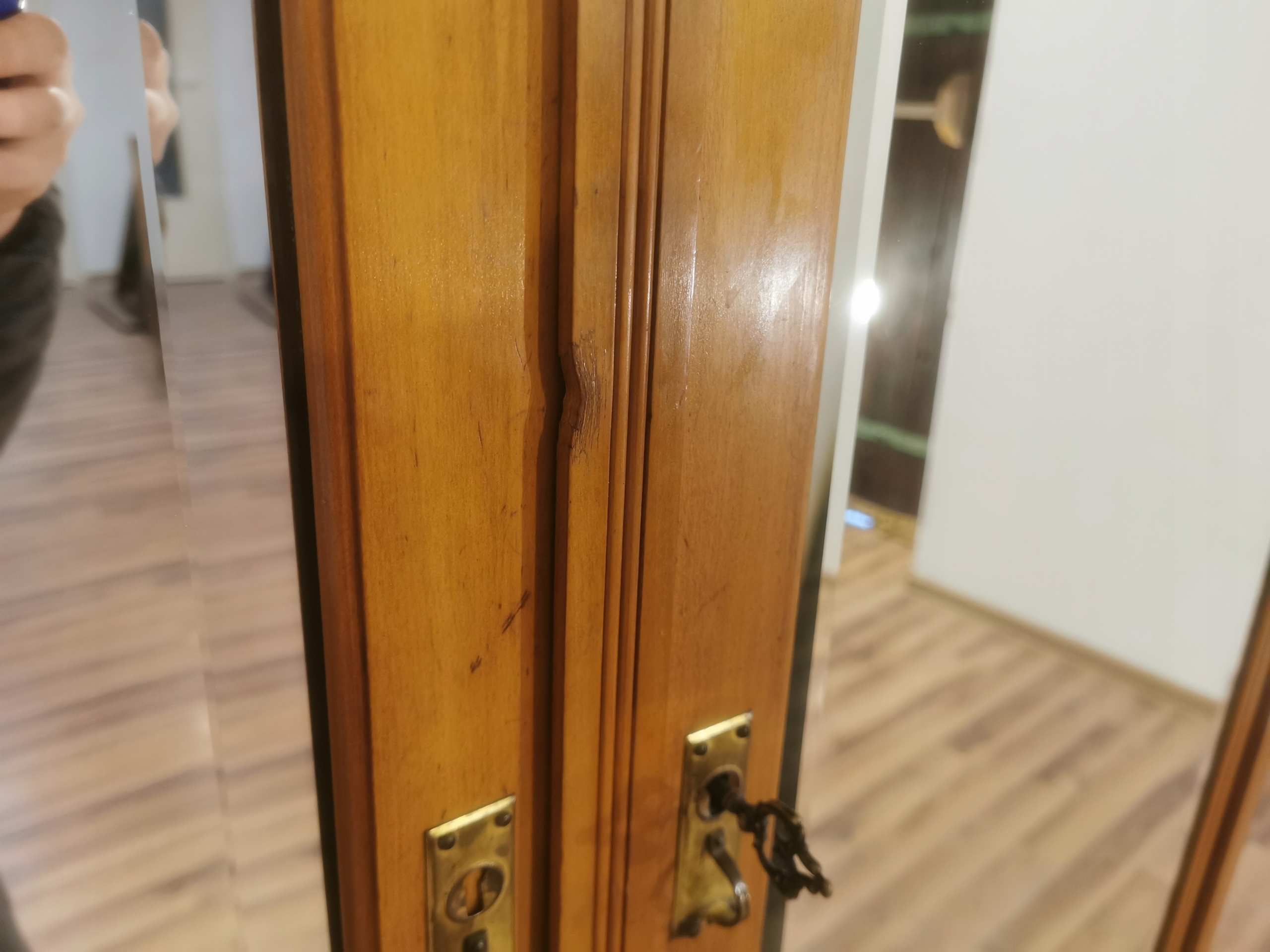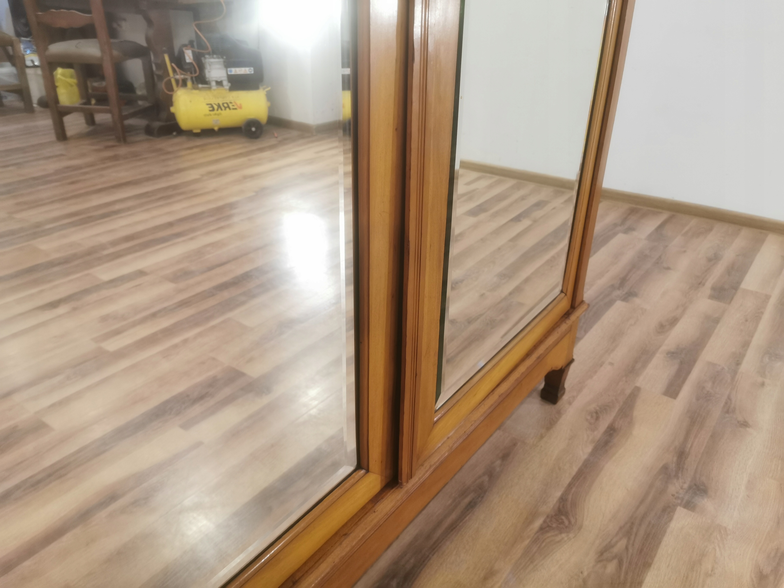 Великі скошені дзеркала, вбудовані в дверцята.