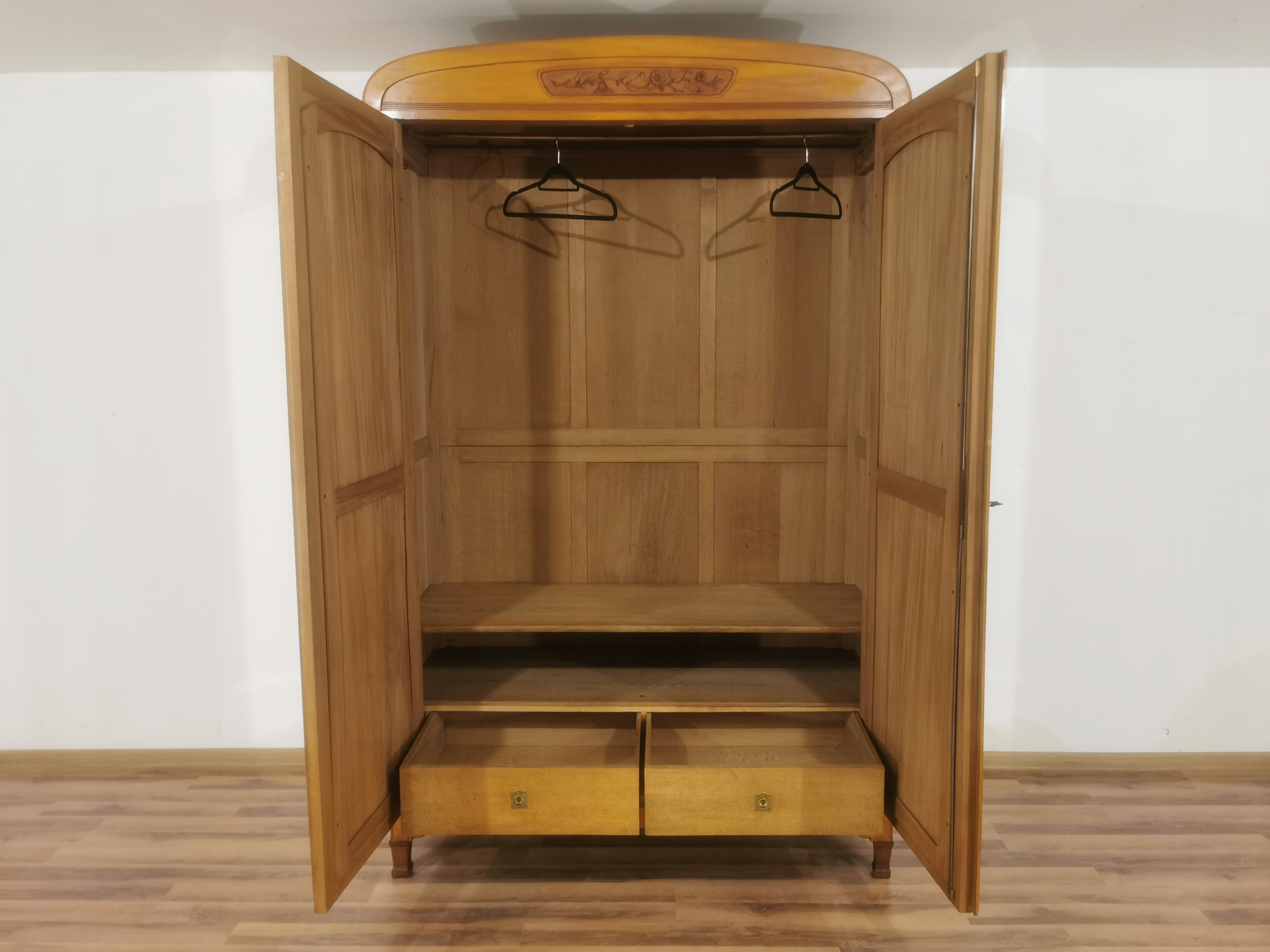 Шафа має профільований вінець з елегантним різьбленням.