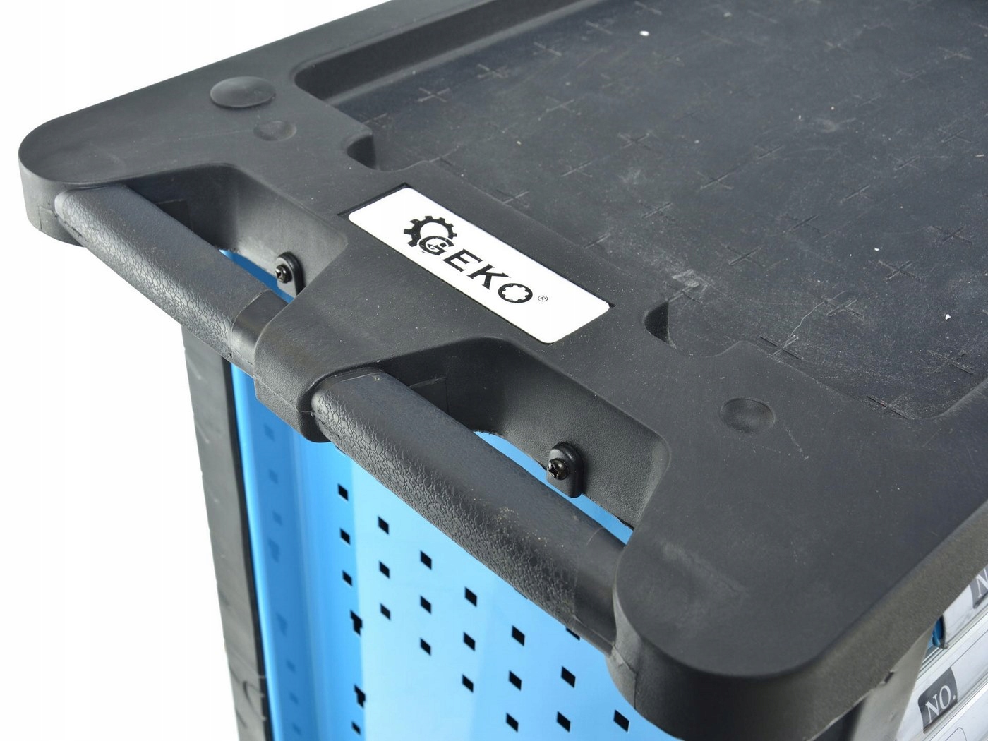 Високоякісна, професійна шафа для інструментів GEKO G10830 з обладнанням на 272 частини. Шафа виготовлена з високоякісної сталі з порошковим фарбуванням. Має транспортувальні колеса з гальмом, сім висувних ящиків, у тому числі п’ять із приладдям, неслизьку стільницю та центральний замок, який гарантує безпечне зберігання інструментів та захищає від можливої крадіжки.