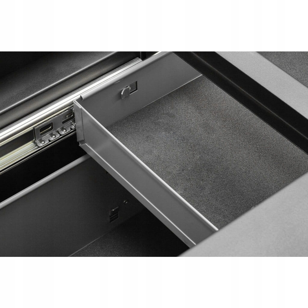 Ящики оснащені кульковими підшипниками, тому їх можна легко продовжити. Крім того, всі ящики можна заблокувати, щоб ніхто не спіймав порізів і не позичав нічого, не запитуючи. Шафа виготовлена з порошкоподібної сталі.
