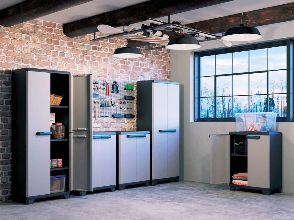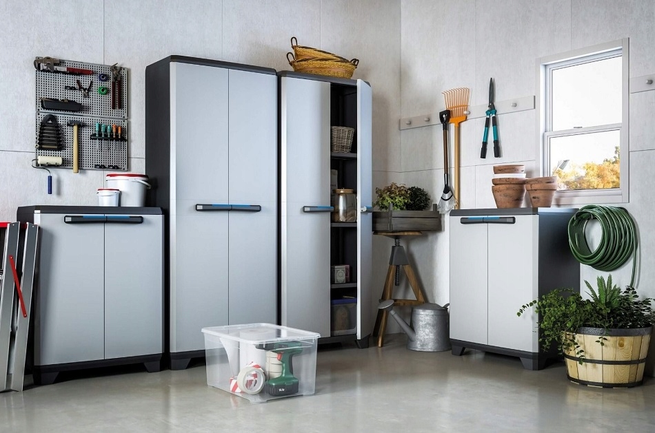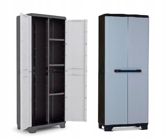 Пластикові шафи — ідеальні меблі для зберігання різноманітних предметів, аксесуарів і побутової техніки. Гардероб розділили на дві частини. Одне з них призначене для більш довгих і великих речей, а друге відділення складається з 3-х регульованих полиць. Це чудове місце для зберігання вмістить ваші віники, швабри, відра, вудки та великі речі. Ви наведете закон і порядок у своїй економічній продукції. У ній можна зберігати миючі засоби, праску або прасувальну дошку. Все необхідне буде в одній шафі. Шафа ідеально підходить для ванної кімнати, пральні, гаража, сушильної кімнати, майстерні, саду або комори. Оснащений ергономічними м'якими ручками та отвором для замка. Всередині є 4 полиці, в тому числі 3 пересувні з максимальним навантаженням 10 кг, висоту яких можна регулювати відповідно до ваших потреб. Ви можете зібрати його самостійно, без використання інструментів, приблизно за 15 хвилин