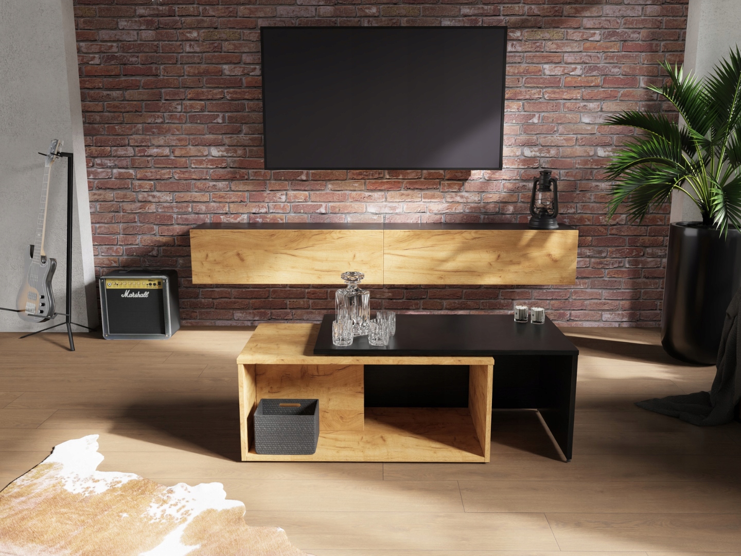версія 2 в 1 - Перевага нашого телевізійного шафи полягає в тому, що можна розмістити або повісити . Стійка версія дозволить вам легко переміщувати меблі, тоді як висячий варіант створює чудовий ефект плавання, робить меблі виглядати приємними та легкими. настінні дюбелі та ноги (2 см у сріблі) включені.