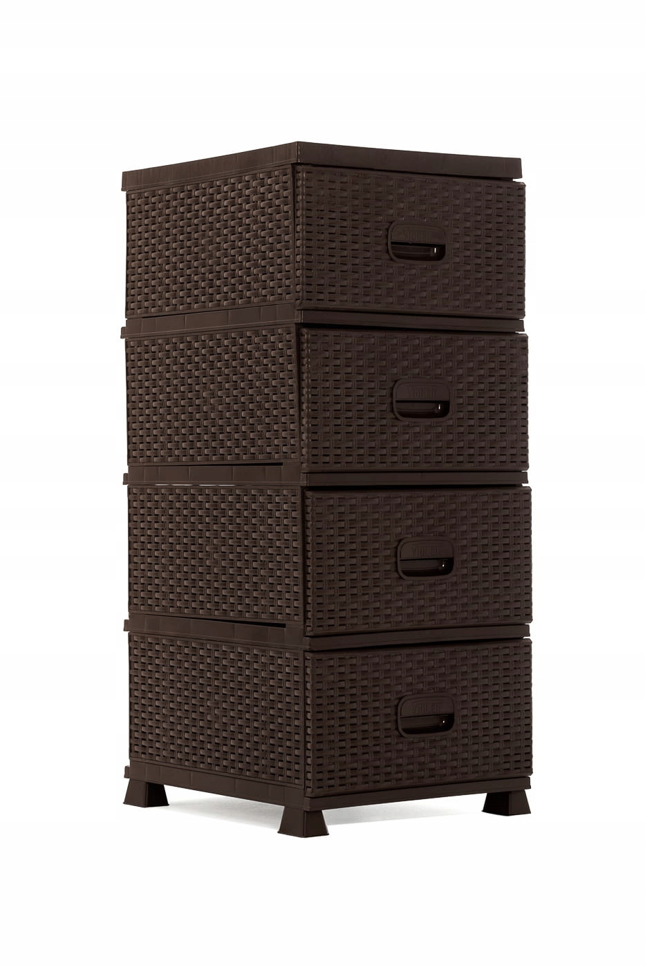 Комод виготовлений з високоякісного пластику, що імітує ротанг . Завдяки високій технології виробництва матеріалу меблі стійкі до пошкоджень і вологи. Він також легкий, що полегшує його перенесення. Комод має 4 шухляди, кожна з яких закривається на невеликий замок, щоб вони не висувалися. Меблі створені для самостійної збірки, але дуже легко збираються - без використання інструментів! Ми можемо скласти комод будь-якої конфігурації, також з'єднавши 2 комода для створення стійки. На інших аукціонах є комоди: Білий, Бежевий, Сірий