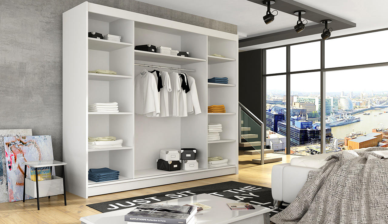 Містка тридверна шафа-купе з розсувною системою Aston II шириною 250 см. В наявності 6 кольорів.