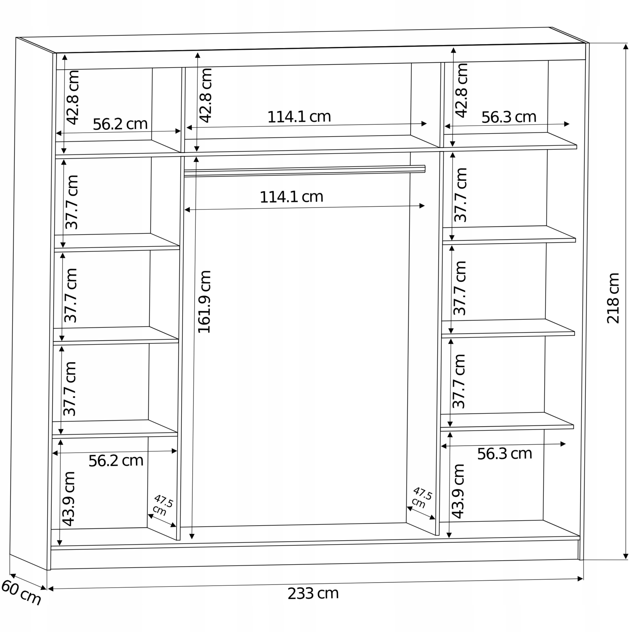 Сельвіо -гардероб та 233 см - ідеальне поєднання сучасного дизайну та практичності, яка буде працювати як у спальні, гардеробу та передпокої.