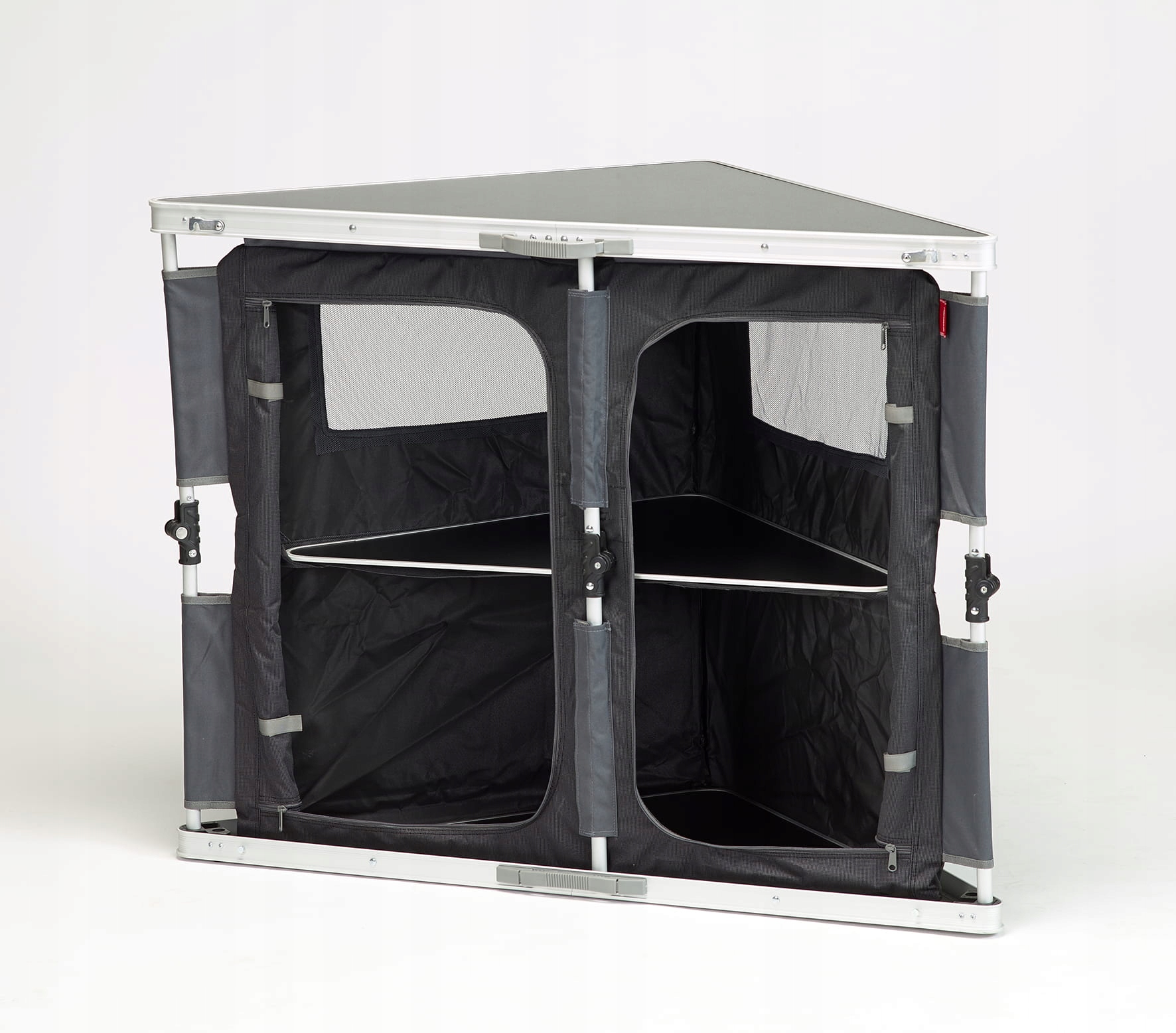 Просто поставте стільницю на шафу та поставте її зверху. Шафа з 3 полицями, задня стінка з москітною сіткою для оптимальної вентиляції. Передня частина шафи закривається на замок. Виготовлений з міцного матеріалу, елегантного темно-сірого кольору. Стандартно постачається з практичною сумкою для транспортування.