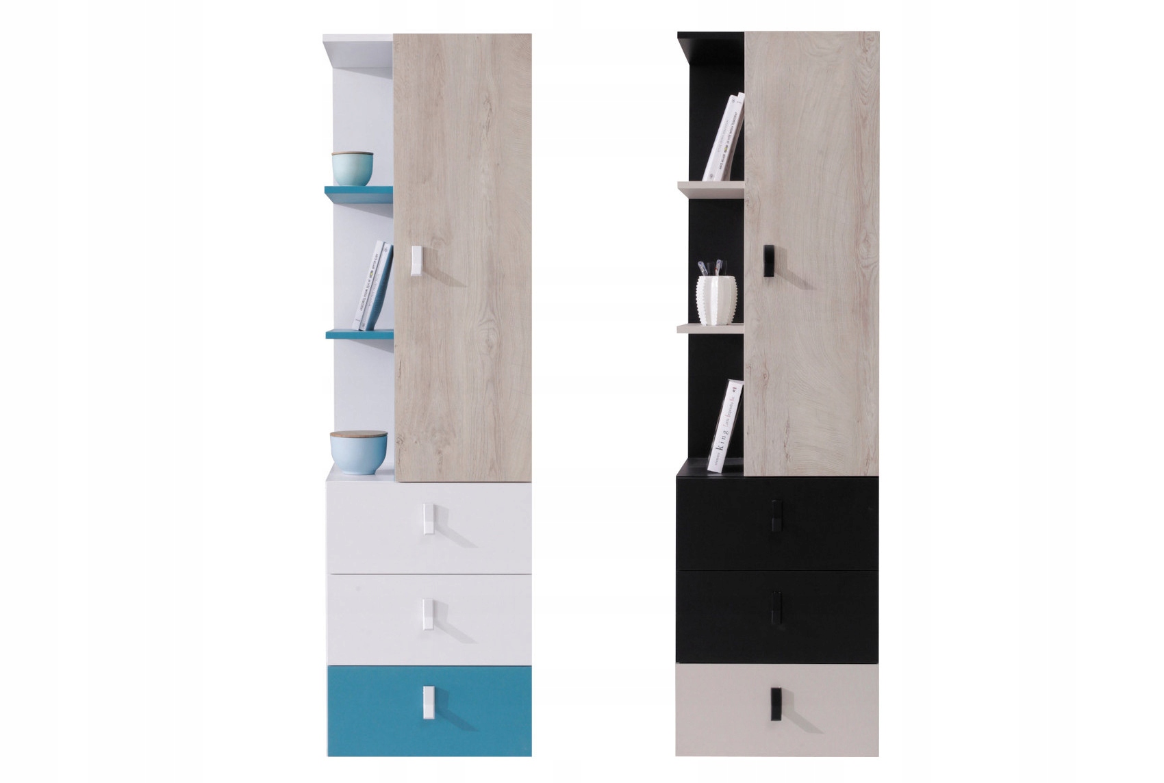Planet PL01 L/P - шафа, що складається з кількох полиць, з’єднаних між собою в один блок із квадратною основою розміром 135x135 см, доступний у правому та лівому варіантах (вирішальний крок під час складання). ). Відкриваючи двері, можна потрапити всередину, де можна легко дістатися до шафи з поручнями та полицями та книжкової шафи з 3 ящиками та полицями. Зовнішня частина, як бачите, також має багато полиць на видимих сторонах.