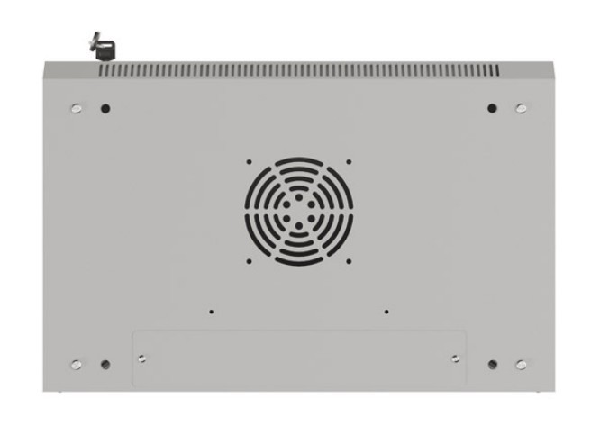 Для забезпечення належного потоку повітря у верхній і нижній панелях є вентиляційні отвори. Додатково в шафі є спеціальне місце для установки вентилятора 120×120 мм, що значно покращує циркуляцію повітря та знижує ризик перегріву обладнання. Завдяки цьому шафи WF03 забезпечують оптимальні умови роботи встановленого в них обладнання та тривалий термін служби.