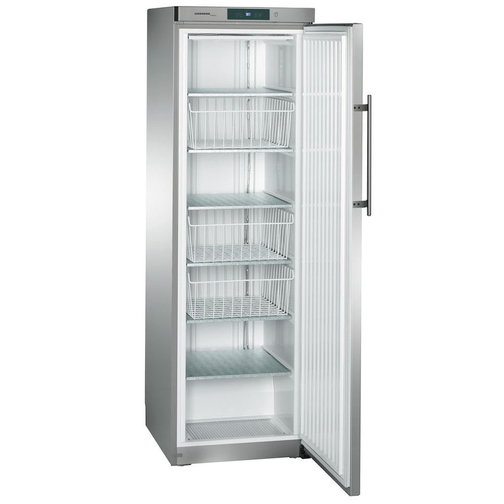 Професійна морозильна шафа Liebherr GG 4060 зі статичним охолодженням. Корисний об'єм: 348 л Корпус і дверцята з нержавіючої сталі. Інтер'єр - білий пластик. Ергономічна дверна ручка.