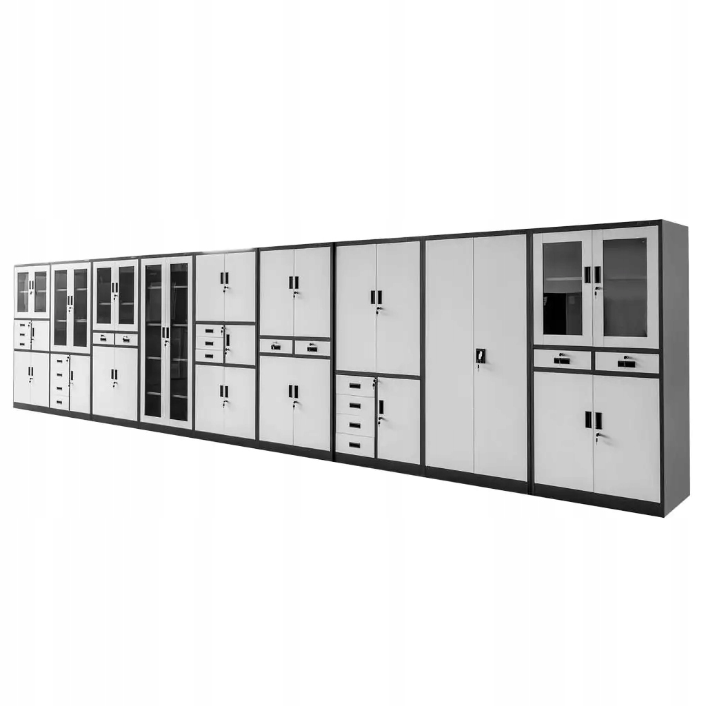 ШАФА ОФІСНА ДЛЯ ДОКУМЕНТІВ металева, засклена, 2 шафи, 4 шухляди, графіт