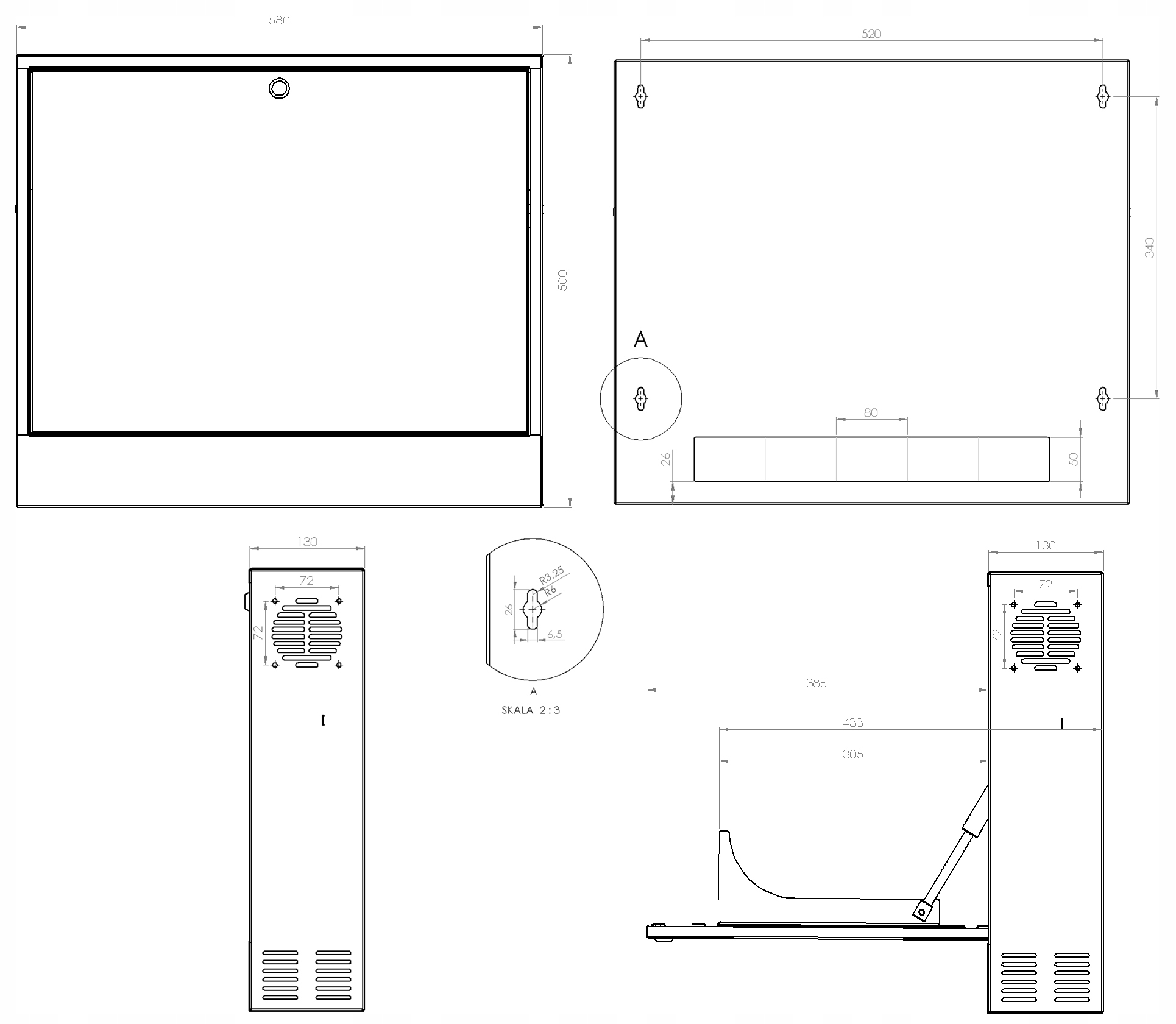 Вертикальний підвісний корпус RACK дозволяє встановлювати пристрої з максимальною глибиною 350 мм, займаючи при цьому мало місця - глибина шафи становить лише 130 мм .