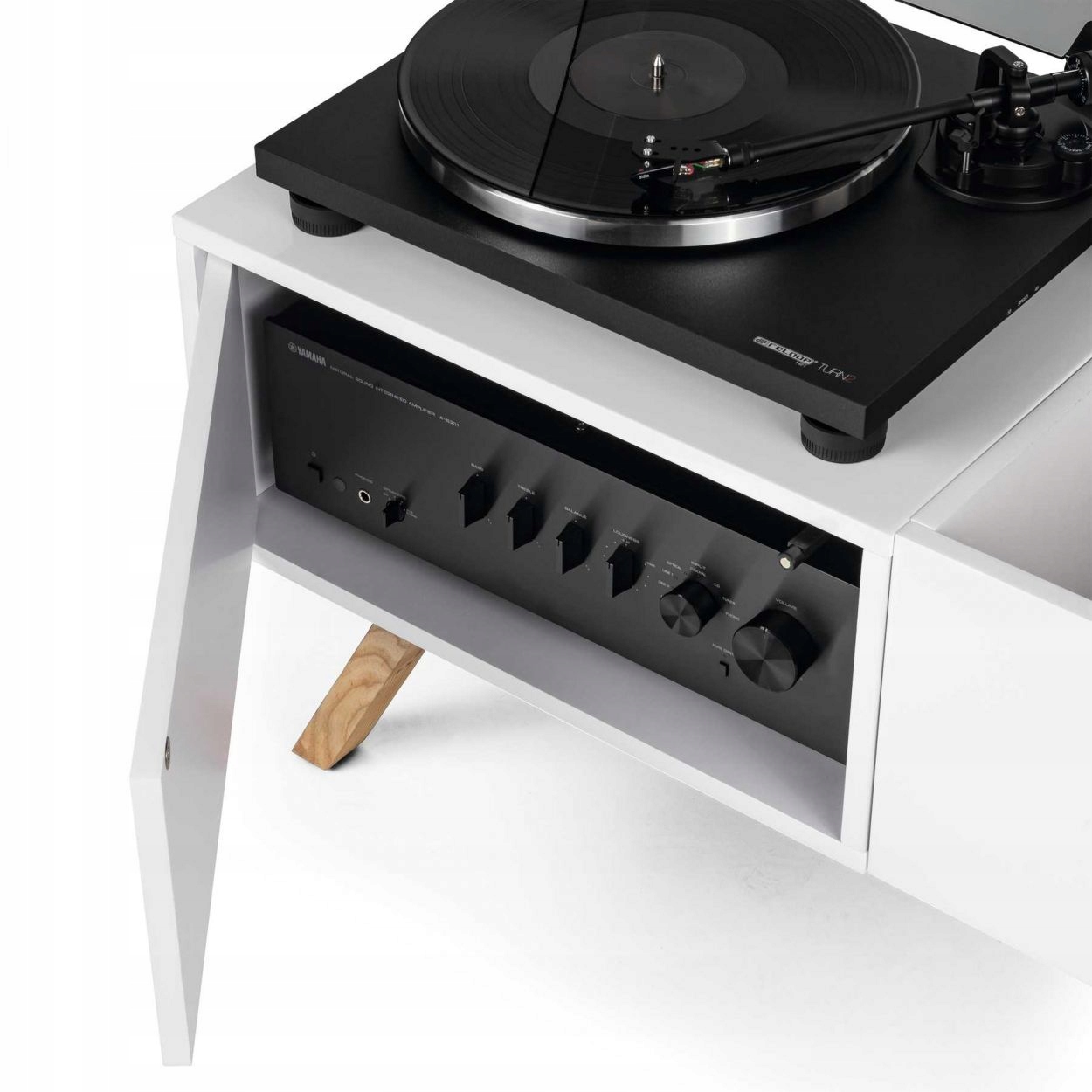 Не Це високоякісний предмет меблів із спеціальним місцем повороту та великою кількістю місця для вашої колекції вінілу. доступ до нього. Закрита передня шафа з механізмом відкриття за допомогою натискання ідеально підсилювач, компакт -диски або книги. Деревина з білим глянсовим покриттям, міцна рама з білого попелу дає неймовірну стабільність. Стиль 60 -х років до вашого салону Станція прослуховування: забезпечує місце для повороту та багато місця для вінілових пластин Відкрито для пластин до 130 шт. з 12 " Передня полиця з дверима для підсилювача, компакт -диска або книг отвір для проводів на задній частині шафи Стабільна і елегантна основа Дизайн, виготовлена з деревної золи (біла зола) Стільниця: [[см] 50 x 42 Контейнер: [см] 33 x 38,5 x 22,5