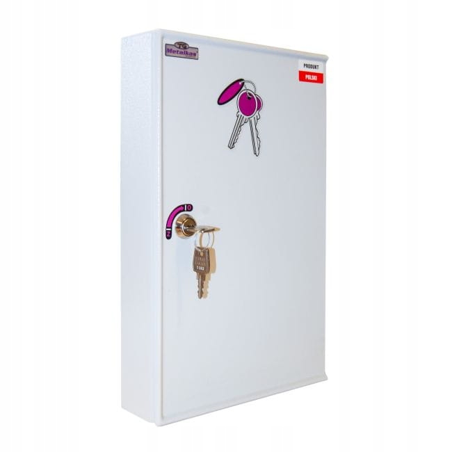 Металева шафа Metalkas призначена для зберігання ключів. Корисно для приймалень готелів, компаній, офісних будівель, офісів, шкіл, складів і приватних будинків. Він має 50 пронумерованих підвісок, які регулюються по вертикалі. Закривається на циліндричний замок. У комплект входять шурупи для кріплення шафи на стіну.