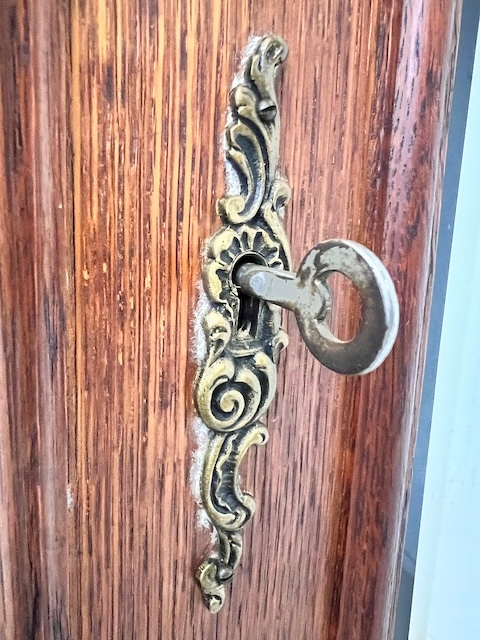 Шафа дводверна. Виготовлена з дуба в стилі рокайль. Гламурний. Дзеркало скошене оригінальне. На жаль, на ньому видно сліди часу у вигляді судинних судин. Замок справний, в комплекті йде ключ. Пошкоджень та дефектів немає. Має характерні сліди використання. Всередині є бар. Під дверцятами два містких ящика. Шафа може бути розібрана та буде доставлена новому власнику по частинах.