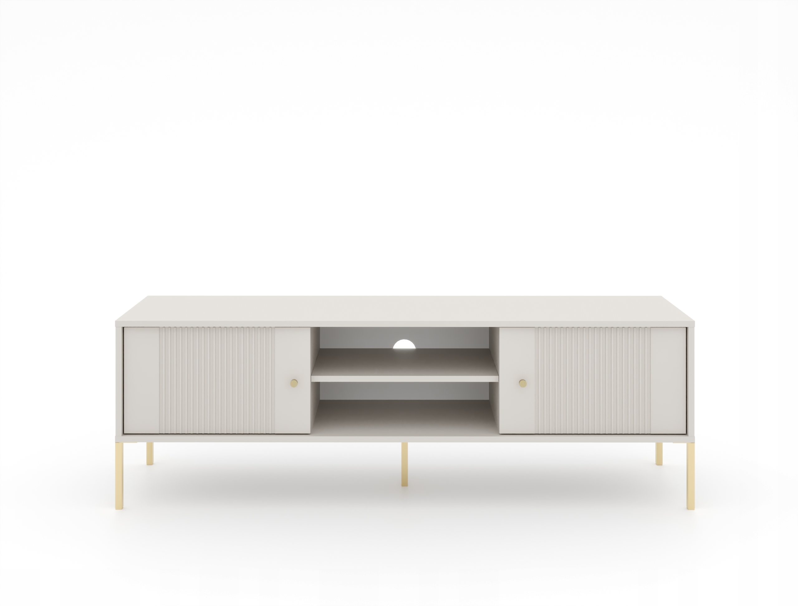 Телевізійна тумба з колекції ISEO в кольорі елегантного кашеміру на тонких золотистих ніжках - пропозиція для людей, які цінують сучасний і водночас затишний інтер'єр. Завдяки своїй витонченій формі та універсальним розмірам він чудово впишеться як у гламурну вітальню, так і в сучасне оформлення.