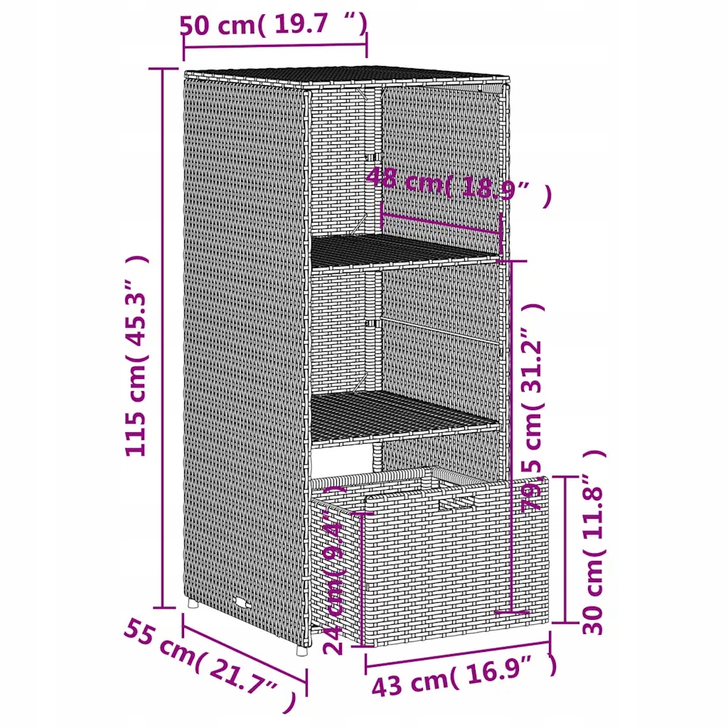 - Розміри: 50 x 55 x 115 см (Ш x Г x В)