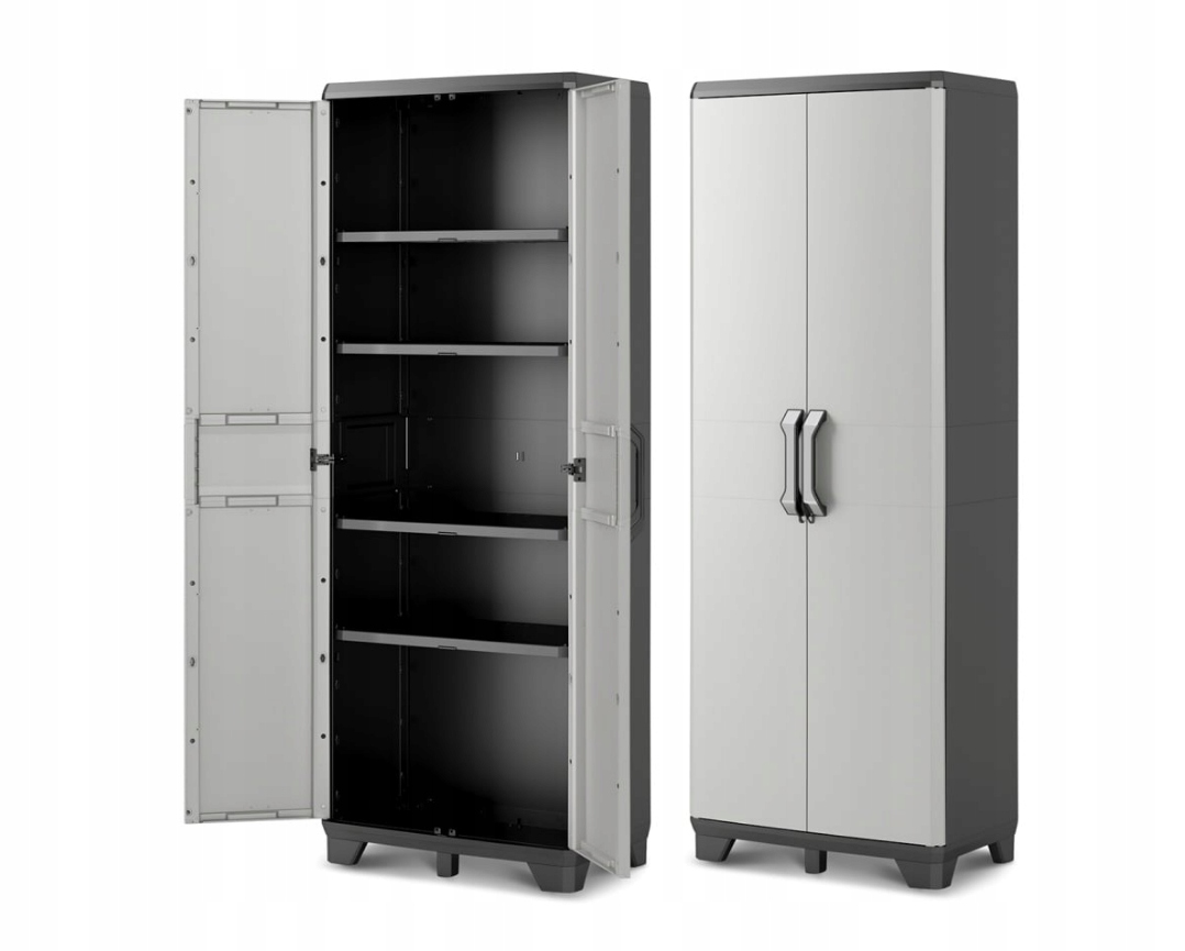 Незалежно від того, чи потрібно вам зберігати інструменти в гаражі, обладнати пральню чи підвал, чи шукаєте місце для зберігання на відкритому повітрі - наш Шафа високої зручності - це предмет меблів, який виправдає ваші очікування. З чотирма регульованими полицями, вантажопідйомністю до 15 кг кожна, підйомом, регульованими ніжками та міцними ергономічними металевими ручками ця шафа гарантує практичність і безпеку . Виготовлена з міцного поліпропілену, стійкого до погодних умов, вся конструкція є стабільною та довговічною.
