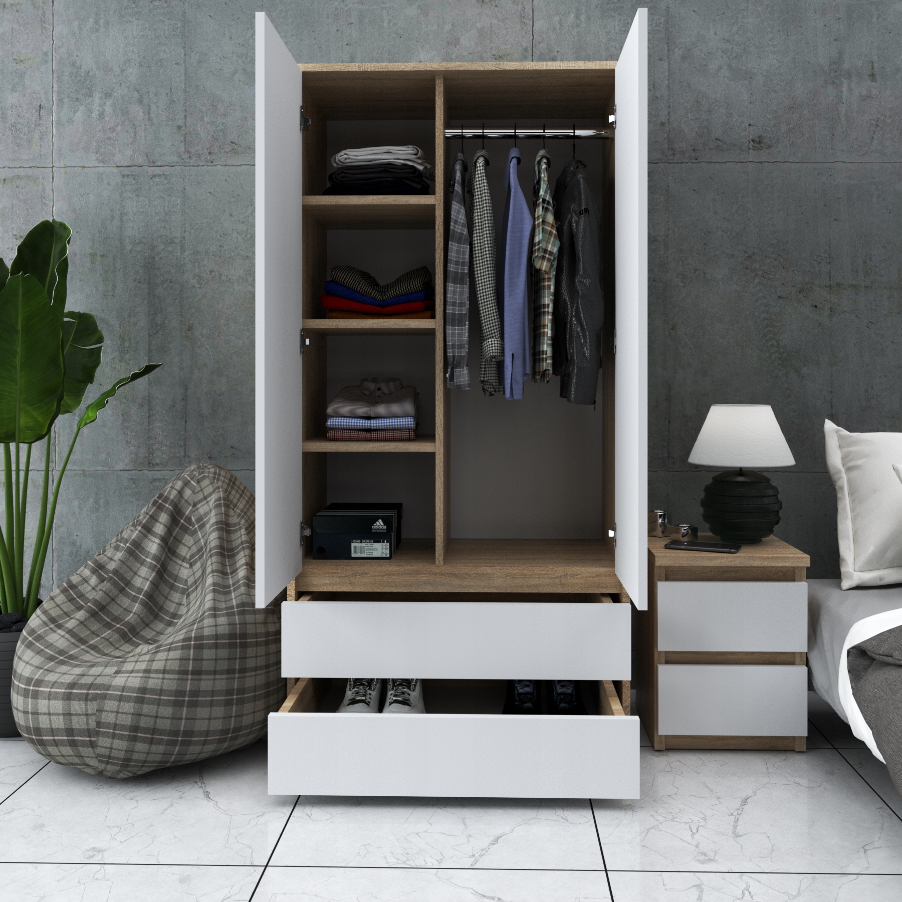 - ✔️Місткість і організація: Наша шафа обладнана 2 ящиками, 2 дверцятами, полицями та рейка , яка дозволяє легко впорядкувати одяг, аксесуари та інші предмети.
