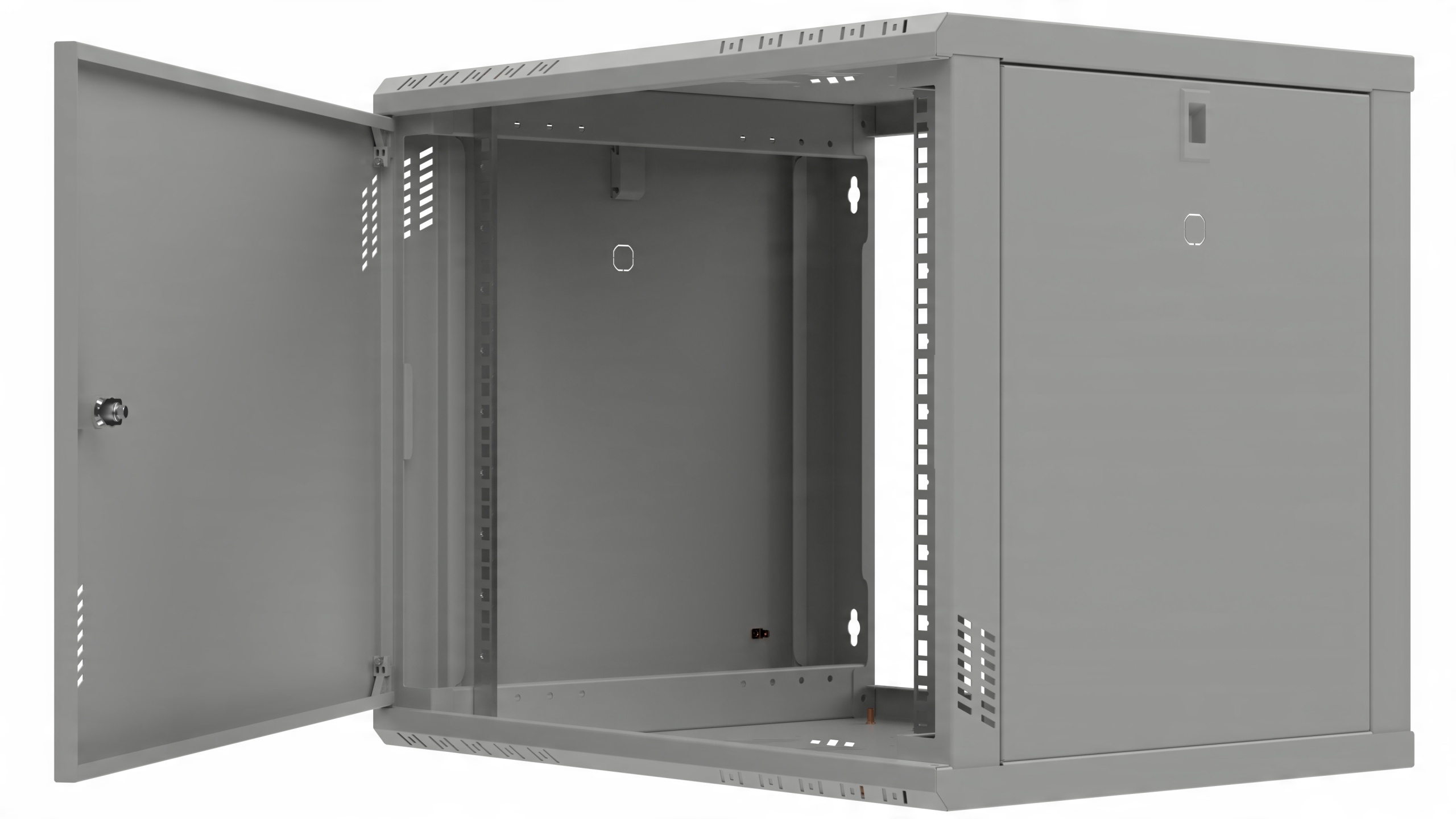 Серверна шафа RACK підвісна 19" 9U 450 мм, металеві двері, сірий (RAL 7035)