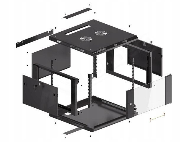 Шафа має можливість вводити кабелі через верхню та нижню панелі. Все це зроблено з високоякісного сталевого прокату, а також у комплект поставки входять додаткові аксесуари для монтажу монтажних рейок, гвинти M6 і кришки вхідних панелей.