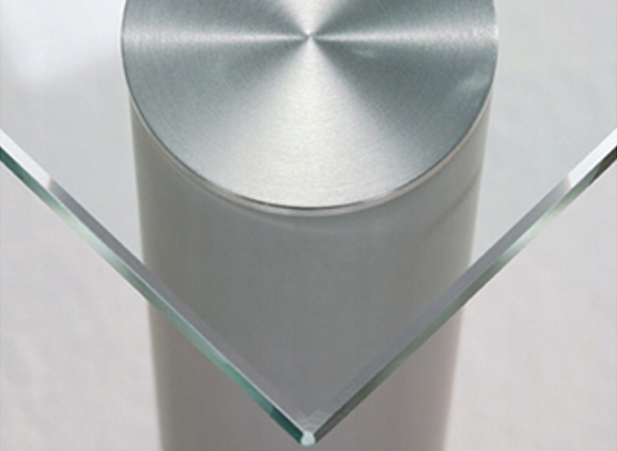 Полиці із загартованого скла в 5 разів міцніші за звичайне скло і з'єднуються з конструкцією за допомогою УФ-склеювання.