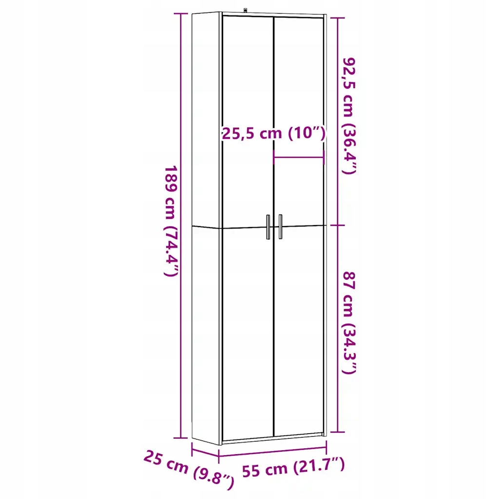 - Розміри: 55 x 25. x 189 см (Ш x Г x В)