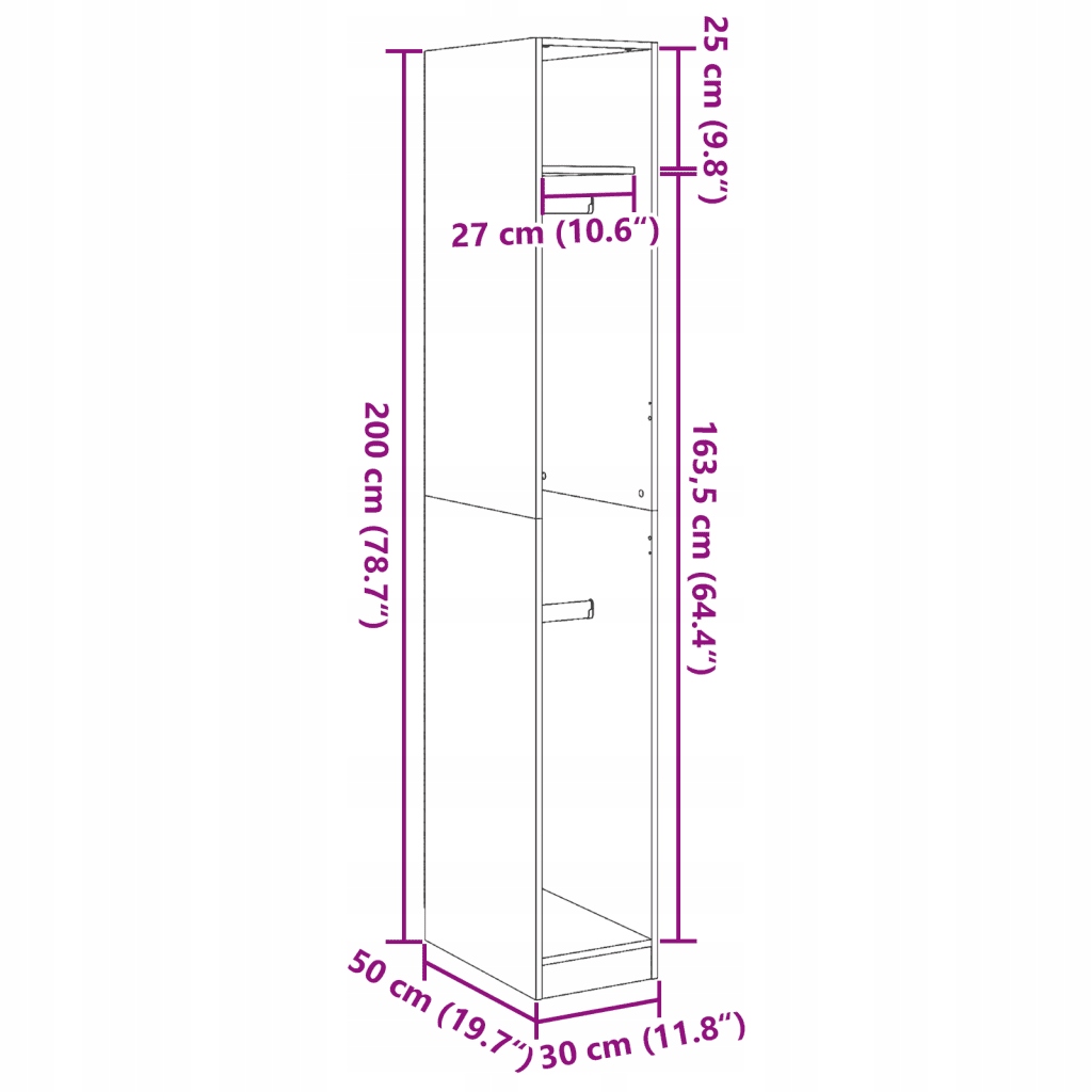 - Розміри: 30 x 50 x 200 см (Ш x Г x В)