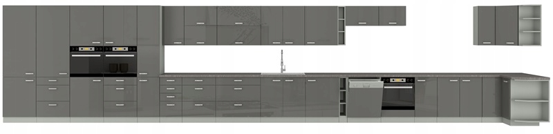 Кухня Grau характеризується простими сірими глянцевими фасадами та безшумною системою закривання.