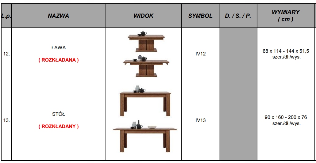 Опис меблів: