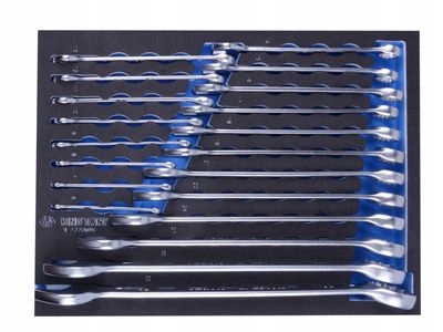 КЛЮЧ КОМБІНАВАНИЙ З РЕВЕРСИВНИМ ХРАСПОВИКОМ 12шт.10 -19мм З ПЕРЕХОДНИКИ ДЛЯ ГНІЗД, ВСТАВКА З ПІНОПОЛИНА ЕВА ДЛЯ ВІЗКА