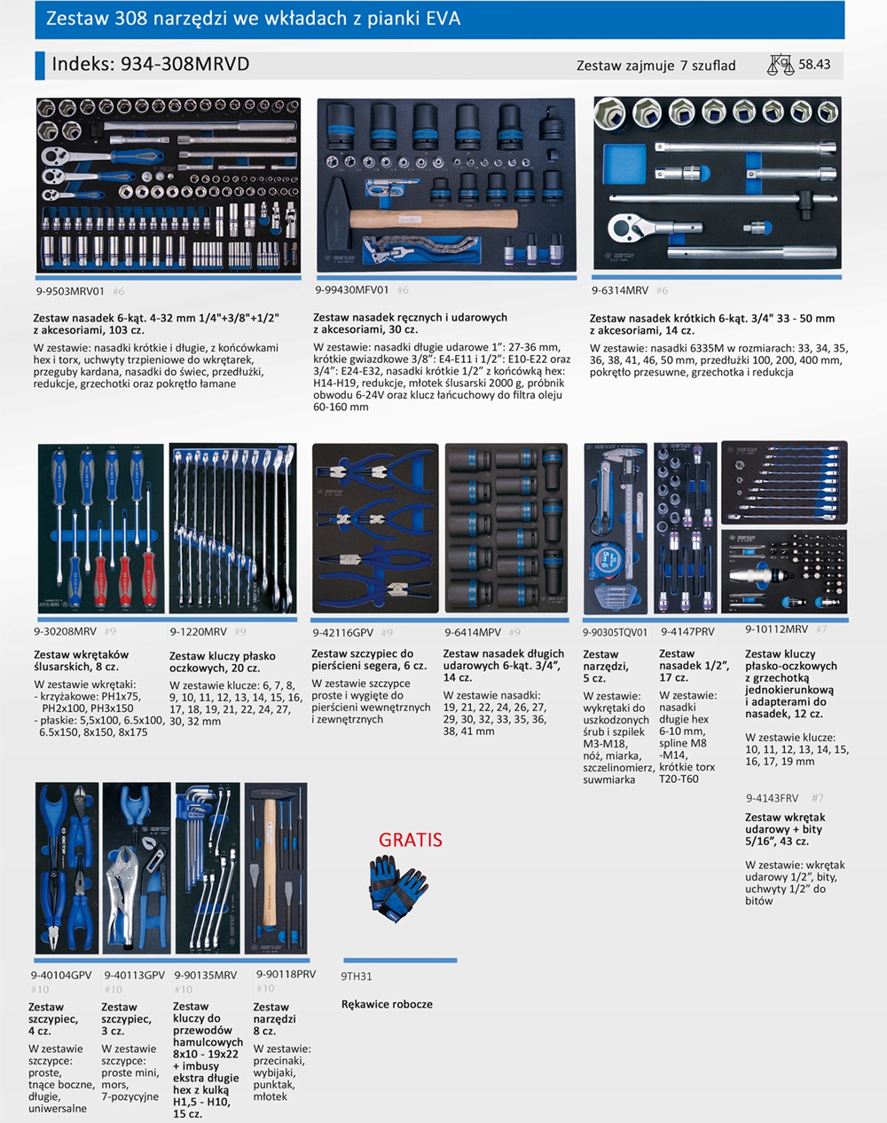 НАБІР ЩИПЦІВ 6011-10R + 6516-1C + 6314-05 , ВСТАВКА з пінопласту EVA ДЛЯ ВІЗКА