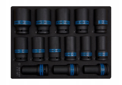 НАБІР УДАРНИХ ГНІЗДІВ 3/4" 14 шт. ДОВГІ 6 - кут 19 - 41 мм, ВСТАВКА З ПІНОПОЛАДНОЇ ЕВА ДЛЯ ВІЗКА