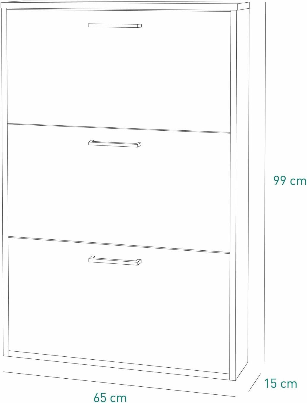 Шафа взуття складається з трьох складних дверей з розмірами 61,50 х 31,70 см, в яких можна розмістити до 9 пар взуття з глибиною лише 15 см. Технічний:
