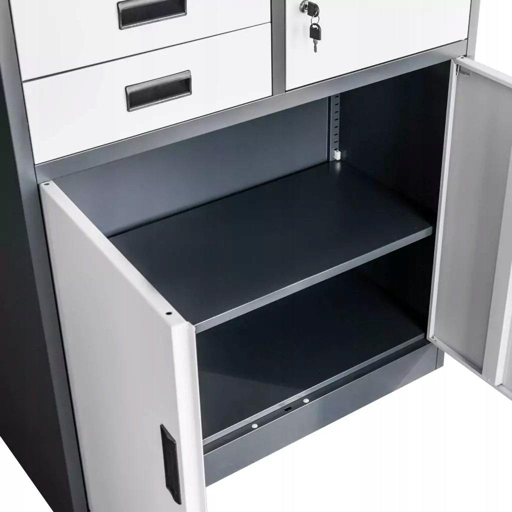 Шафа для документів виготовлена з листової сталі з порошковим покриттям, що гарантує довговічність. Інвестуючи в нашу шафу, ви отримуєте продукт, який прослужить вам багато років, навіть при інтенсивному використанні.