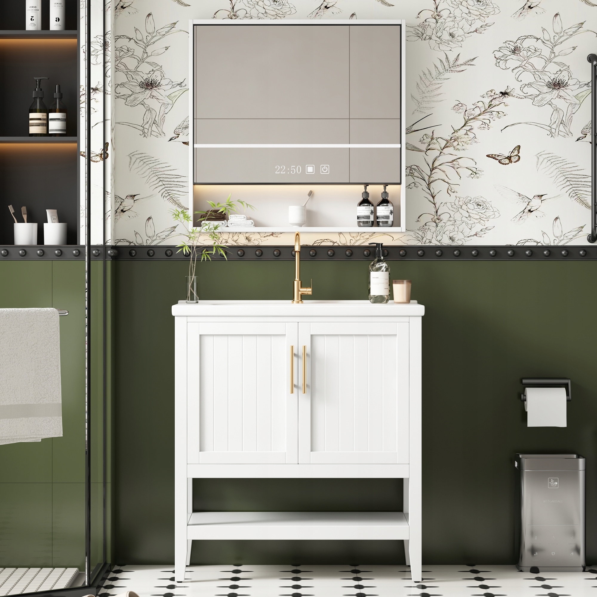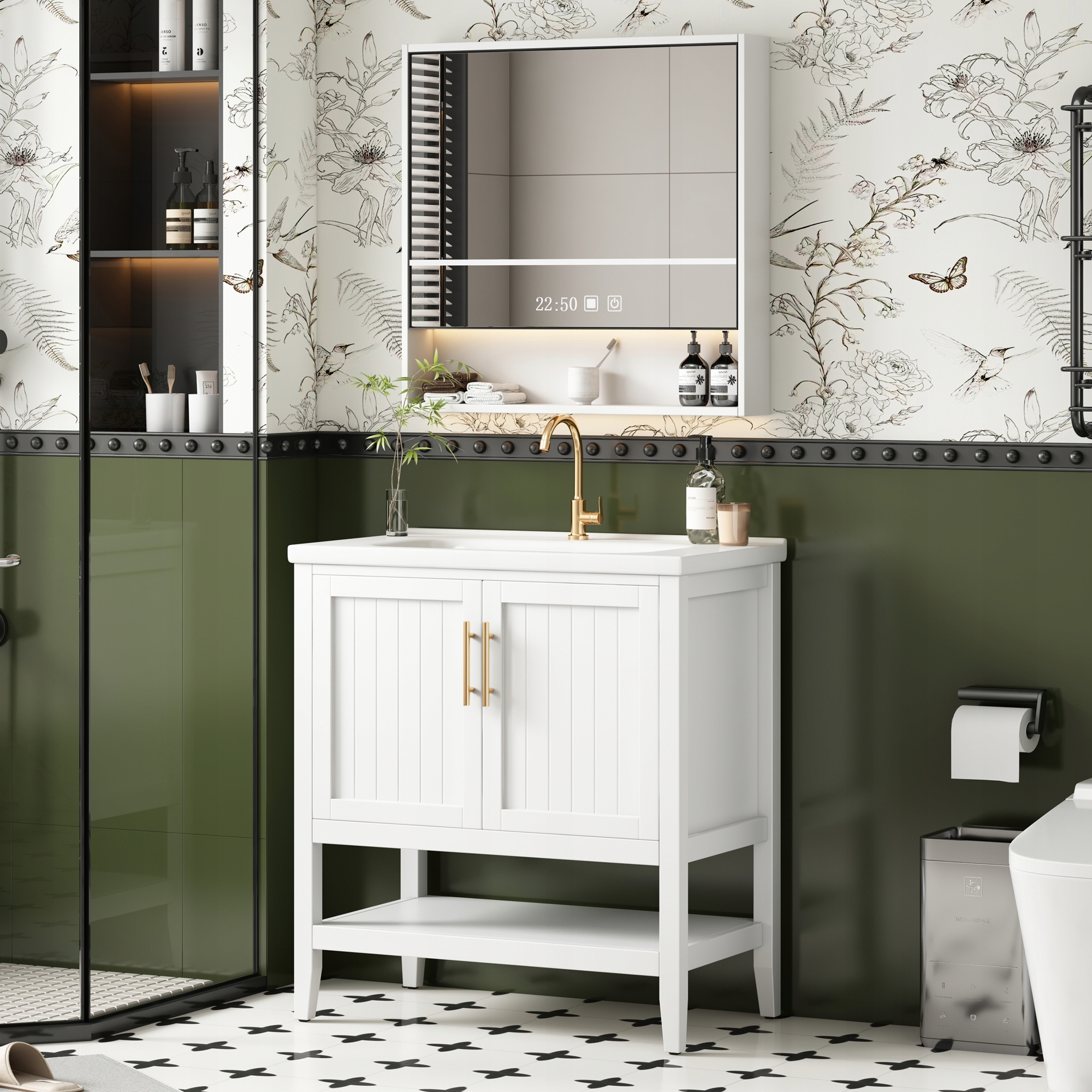 Примітка: Цей набір меблів для ванної містить одну шафу для ванної кімнати та одну раковину, але не містить акумуляторів.