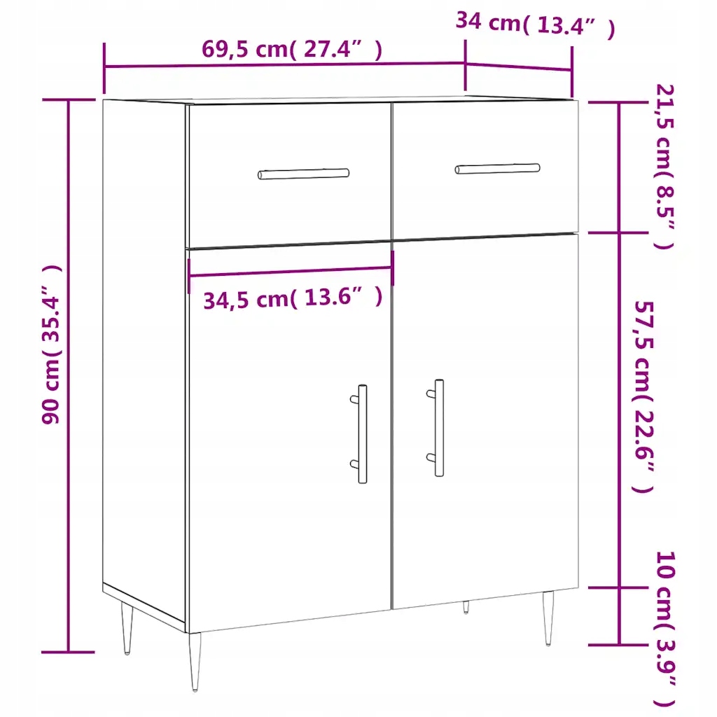 Загальні розміри: 69,5 x 34 x 90 см (Д x Ш x висота)
