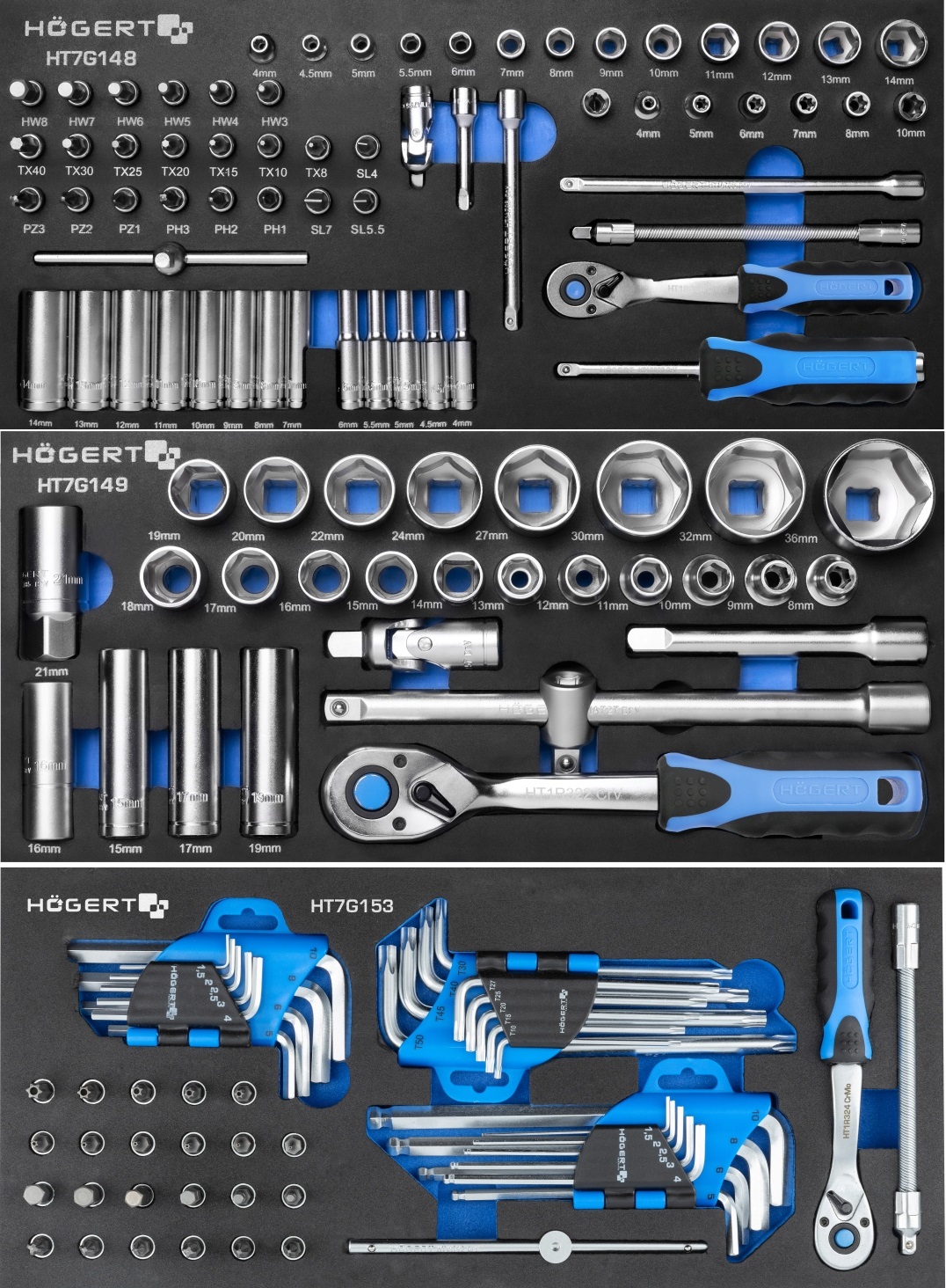 HT7G149 Набір інструментів з тріскачкою 1/2", 28 шт., вставка EVA