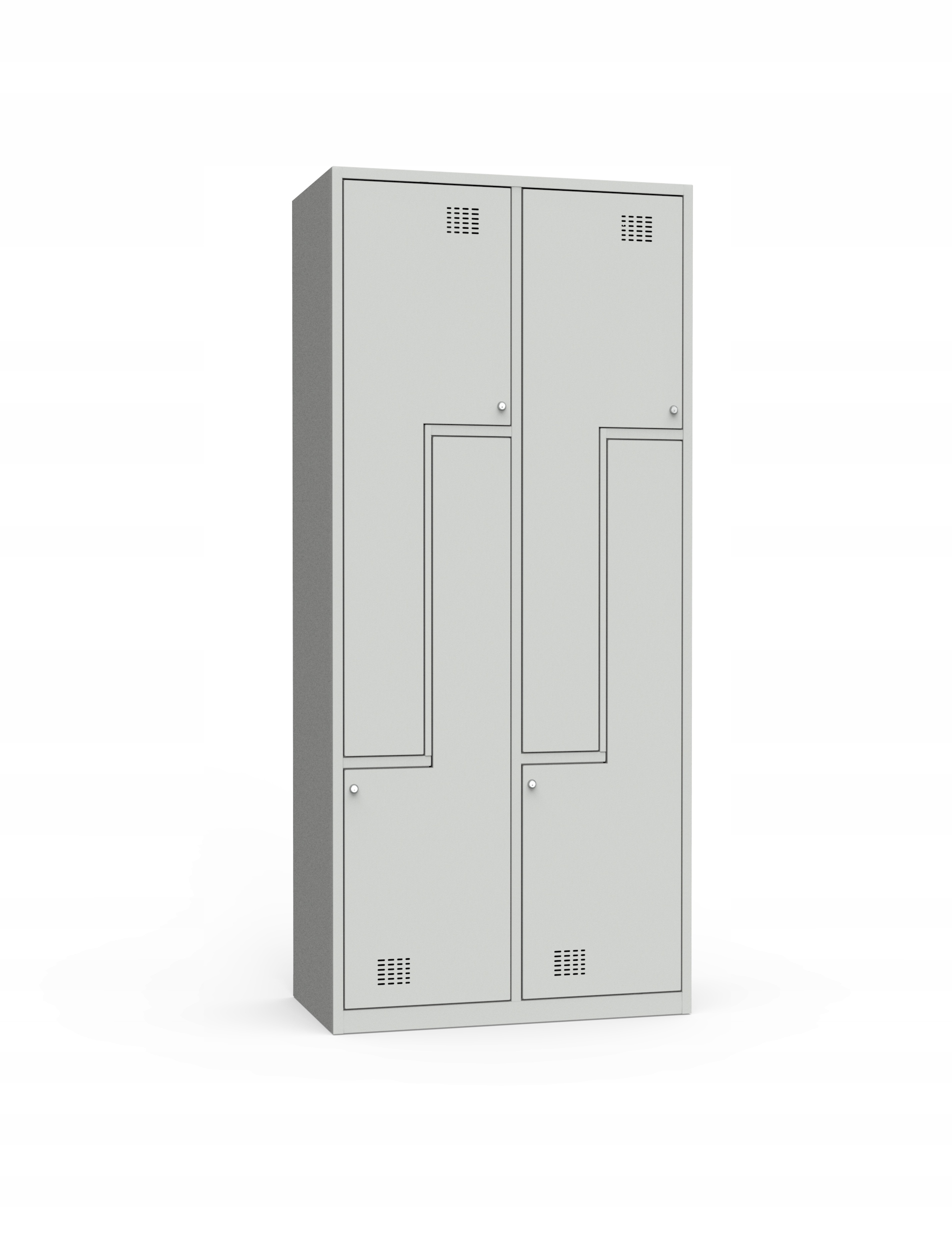 Шафка для одягу для басейну дозволяє зберігати речі в 4 незалежних відділеннях. Шафи виготовлені з листової сталі, що робить їх міцними та стійкими, а порошкове покриття захищає їх від корозії.