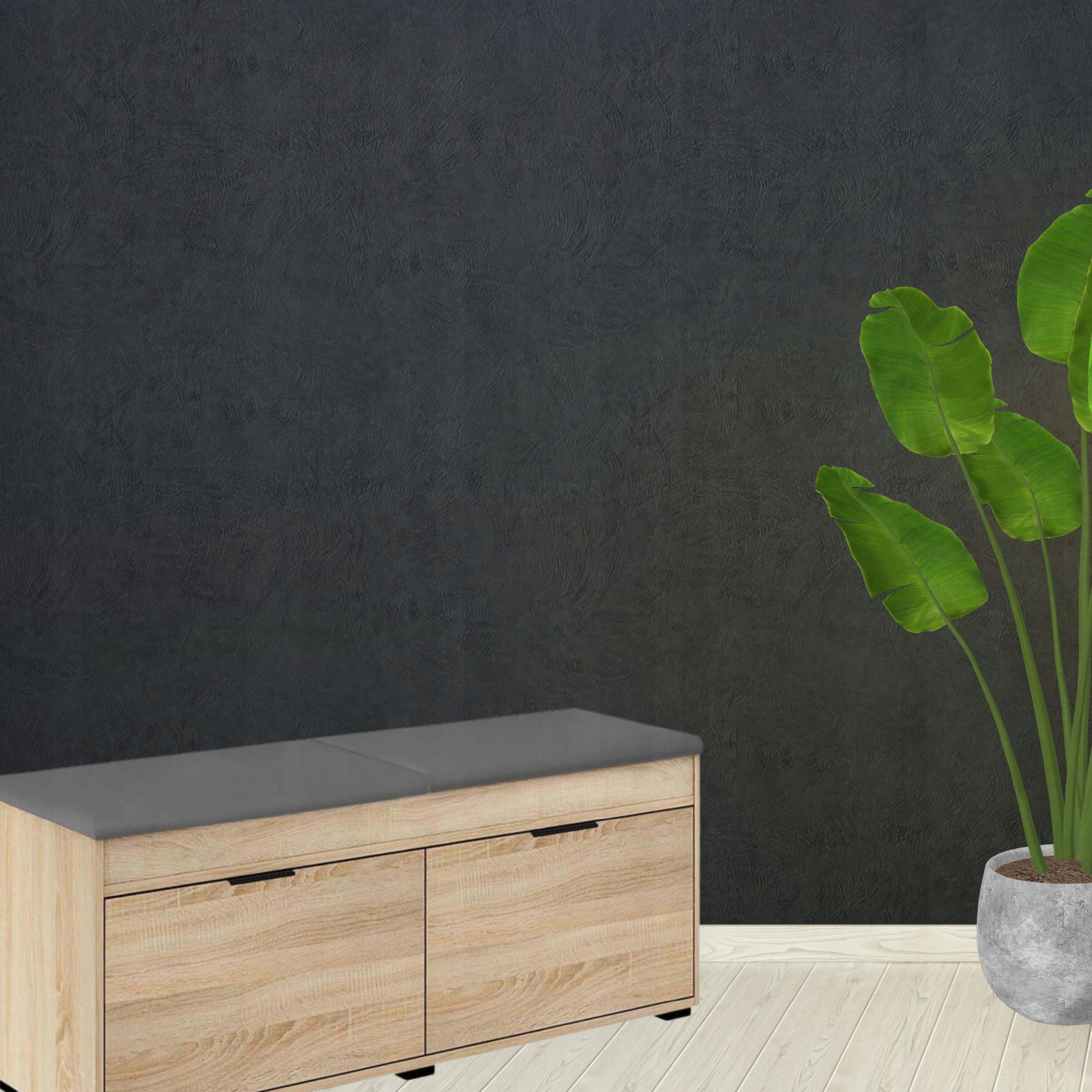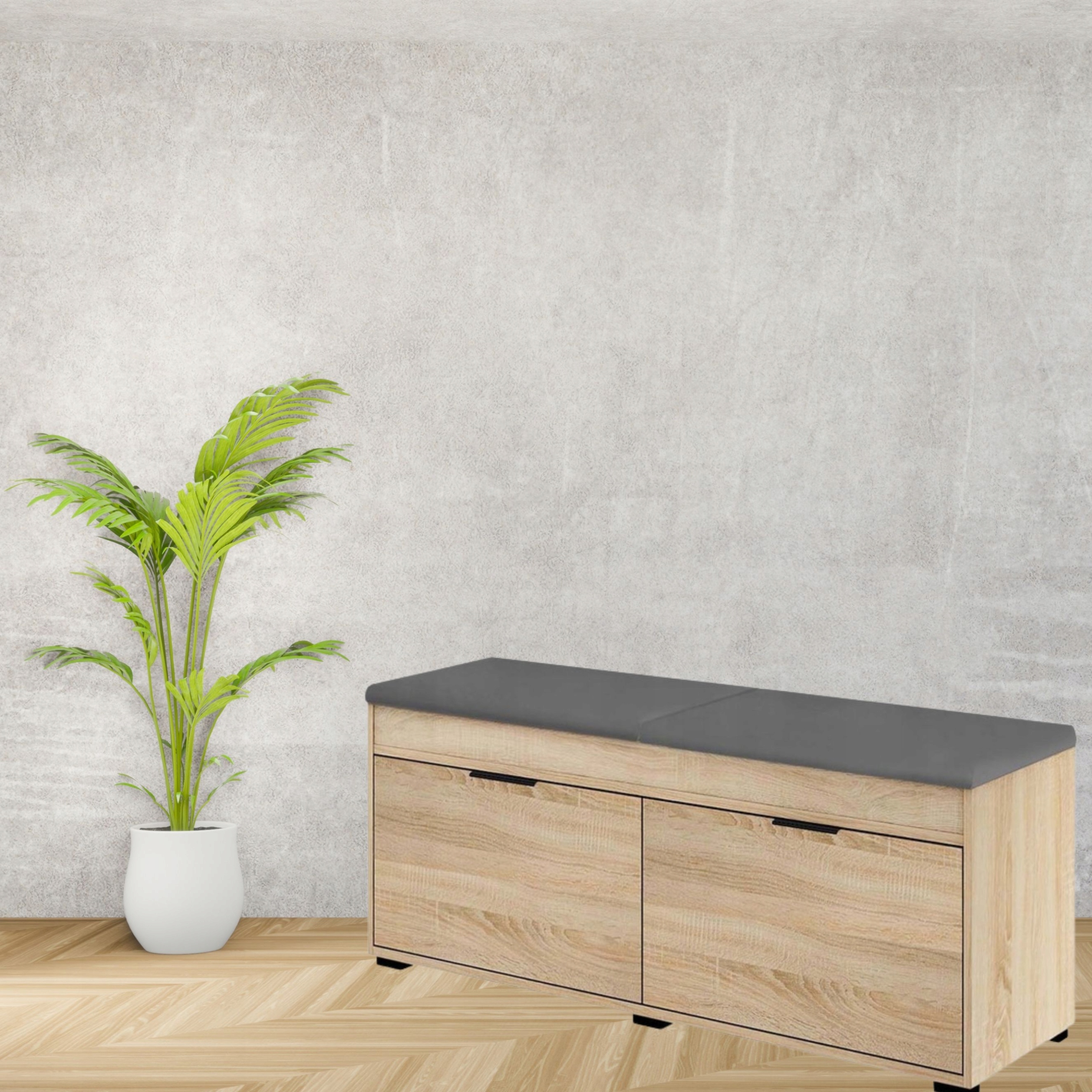 Шафа може вмістити багато пар взуття. Це полегшує зберігання та взування, а також робить інтер'єр більш сучасним. Сидіння відкрито зверху, завдяки чому служить місцем для зберігання щоденних аксесуарів.