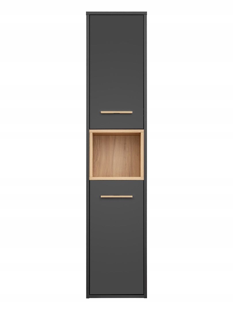 Колекція Borneo — це набір сучасних і функціональних меблів для ванної кімнати, в яких ідеально поєднуються темно-сірі корпуси з деревними вставками.