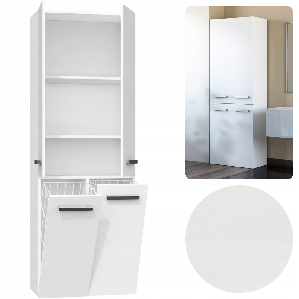 ШАФКА ДЛЯ ВАННОЇ КОМНАТИ КНИЖКОВА ШТАФА СТОЛОВКИ NEL DD 2K КОШИКИ, БІЛИЙ, МАТОВИЙ, 60см