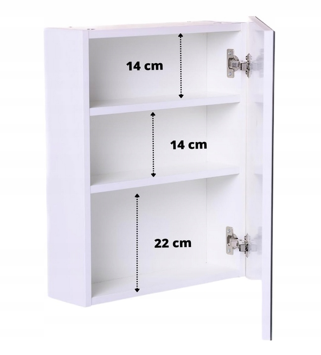Всередині шафи розташовані три суцільні полиці. Це ідеальне місце для зберігання косметики та аксесуарів для ванної кімнати.