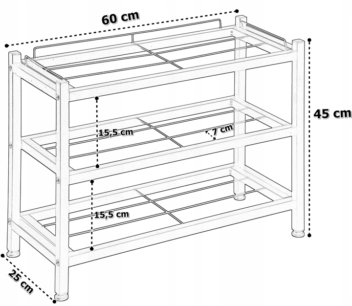 Міцна сталева конструкція забезпечує всьому пристрою стабільність, довговічність і міцність, що робить його ідеальним для щоденного використання. Оснащенийрегулювальними шайбамидозволяє вирівняти полицюнавіть на нерівній підлозі.