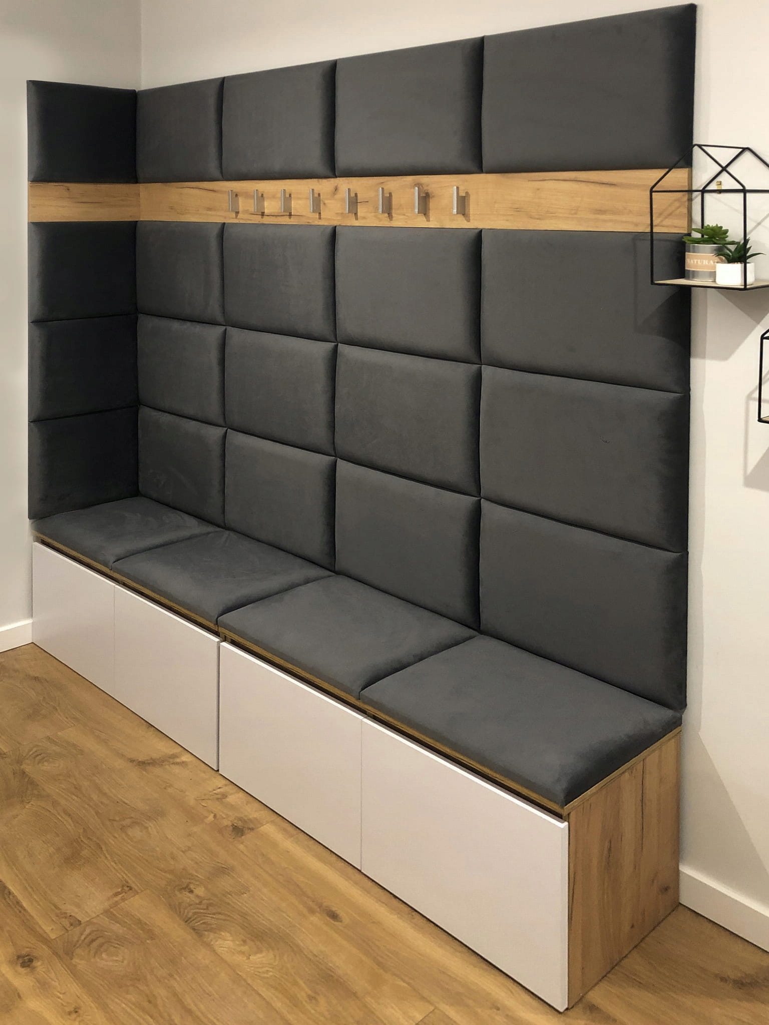 У цій шафі ми використали газові приводи, які забезпечать зручне відкривання та закривання шафи. Сидіння висотою 5 см виготовлені з ламінованої дошки та оббивки товщиною 3 см. губка, покрита високоякісною оббивною тканиною різних кольорів на вибір.