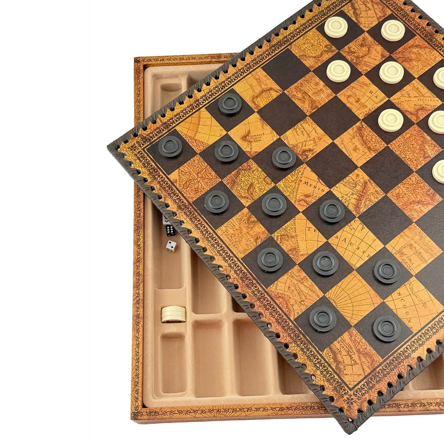 Шахи 3 в 1 "Скелети" 35×35 см - екошкіра, фігури полістоун 8 см