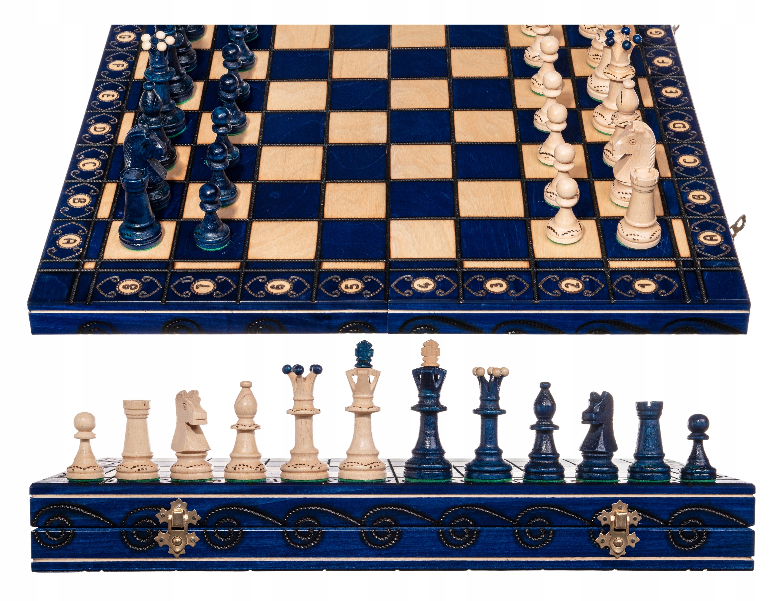 Шахи дерев'яні STRATEG 48см ПРЕМІУМ синя велика шахова дошка в подарунок