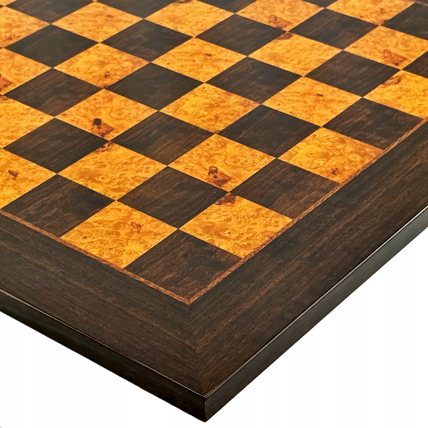 Ексклюзивне дерево: елегантна шахова дошка виготовлена з клена (radica di érable) у теплих відтінках коричневого.