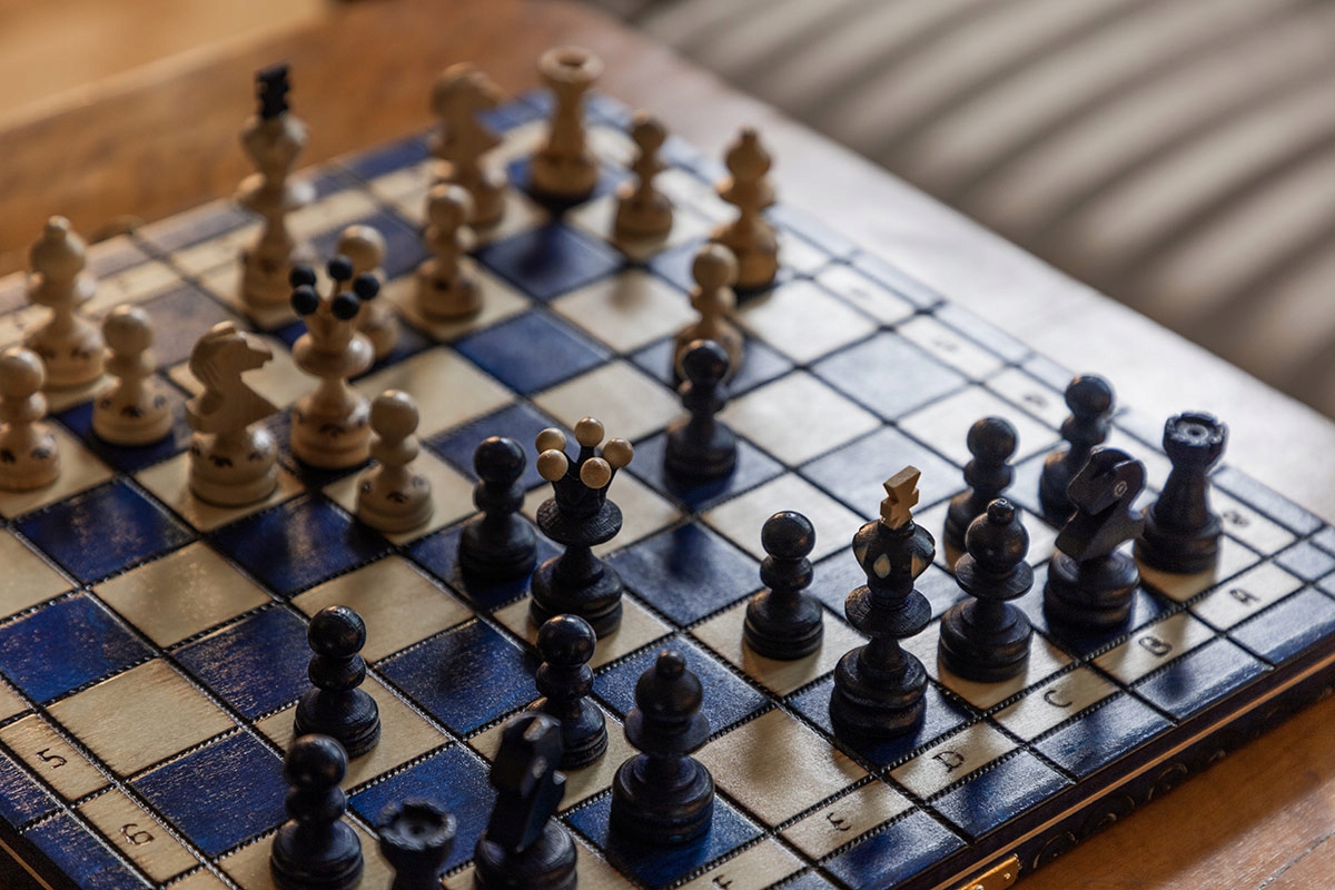 Szachy Perła Mała niebieska/Szachy Perełka/ Szachy drewniane/ producent