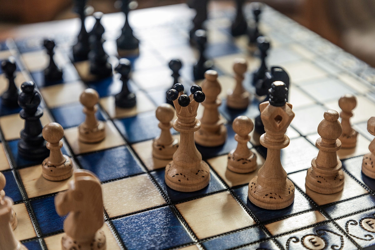 Szachy Senator niebieski/Szachy ozdobne/Szachy drewniane/ producent
